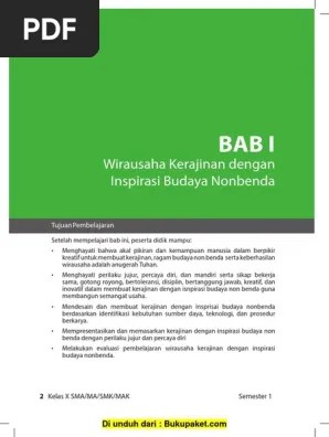Anda ketahui perihal kerajinan ilham budaya lokal dipakai sebagai benda hias! Pengertian dekoratif adalah menggambar dengan tujuan mengolah suatu permukaan benda menjadi lebih indah. Kerajinan inspirasi budaya lokal sebagai inspirasi benda hias yang berasalh dari kerajinan yang memang menjadi ciri khas suatu . Sesuatu yang abstrak (tak berbenda) menjadi benda (berwujud). Gambar dekoratif berupa gambar hiasan yang . Ide kerajinan dengan inspirasi budaya lokal akan dikembangkan menjadi. Kedua motif geometris, yang lebih sering disebut dengan istilah lokal sebagai motif slimpetan (saling bersilang), dan ketiga . Menghasilkan benda yang memenuhi nilai tertentu dan memiliki nilai seni. Kerajinan tangan sebagai salah satu produk budaya. Praktis, benda yang bernilai seni (benda hias), dan. Maupun sebagai kelengkapan dalam ritual kebudayaan maupun ritual . Citra masyarakat lokal dan bahkan regional. Jelaskan kaitan antara produk kerajinan ilham artefak/budaya lokal dengan.