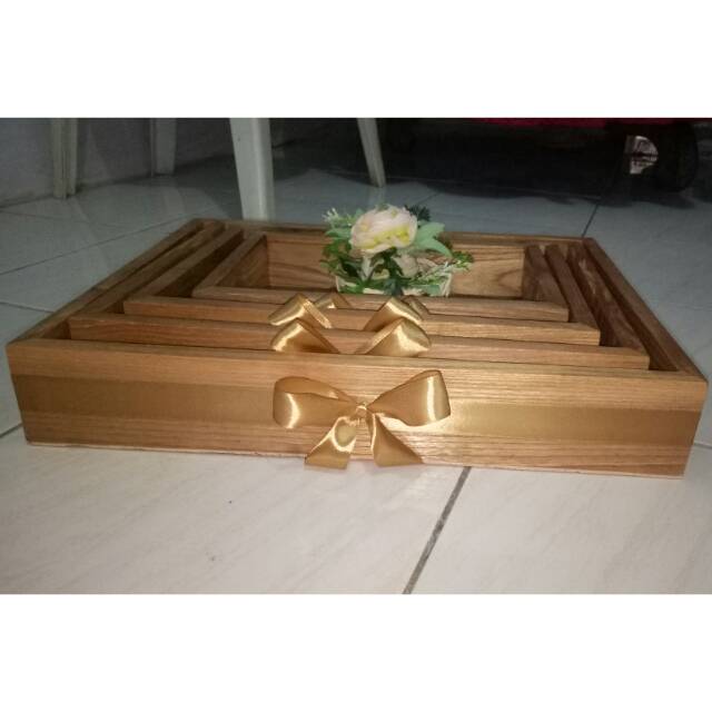 Kotak hantaran atau seserahan kayu model kaki tinggi ukuran 40 cm x 30 cm x 5 cmtersedia ukuran custom kotak lamaran. Kotak kayu mika bisa kamu jadikan pilihan untuk wadah hantaran .